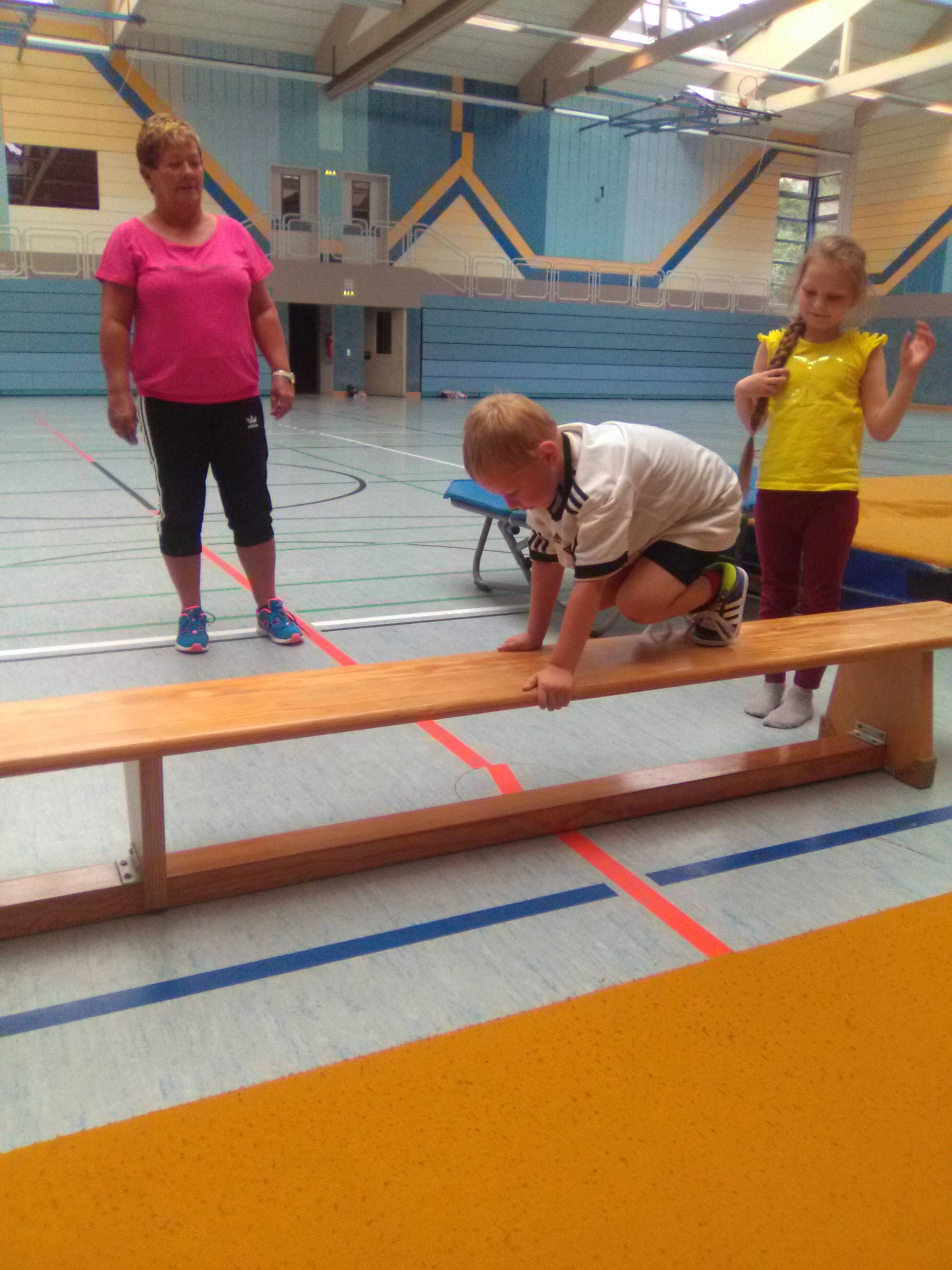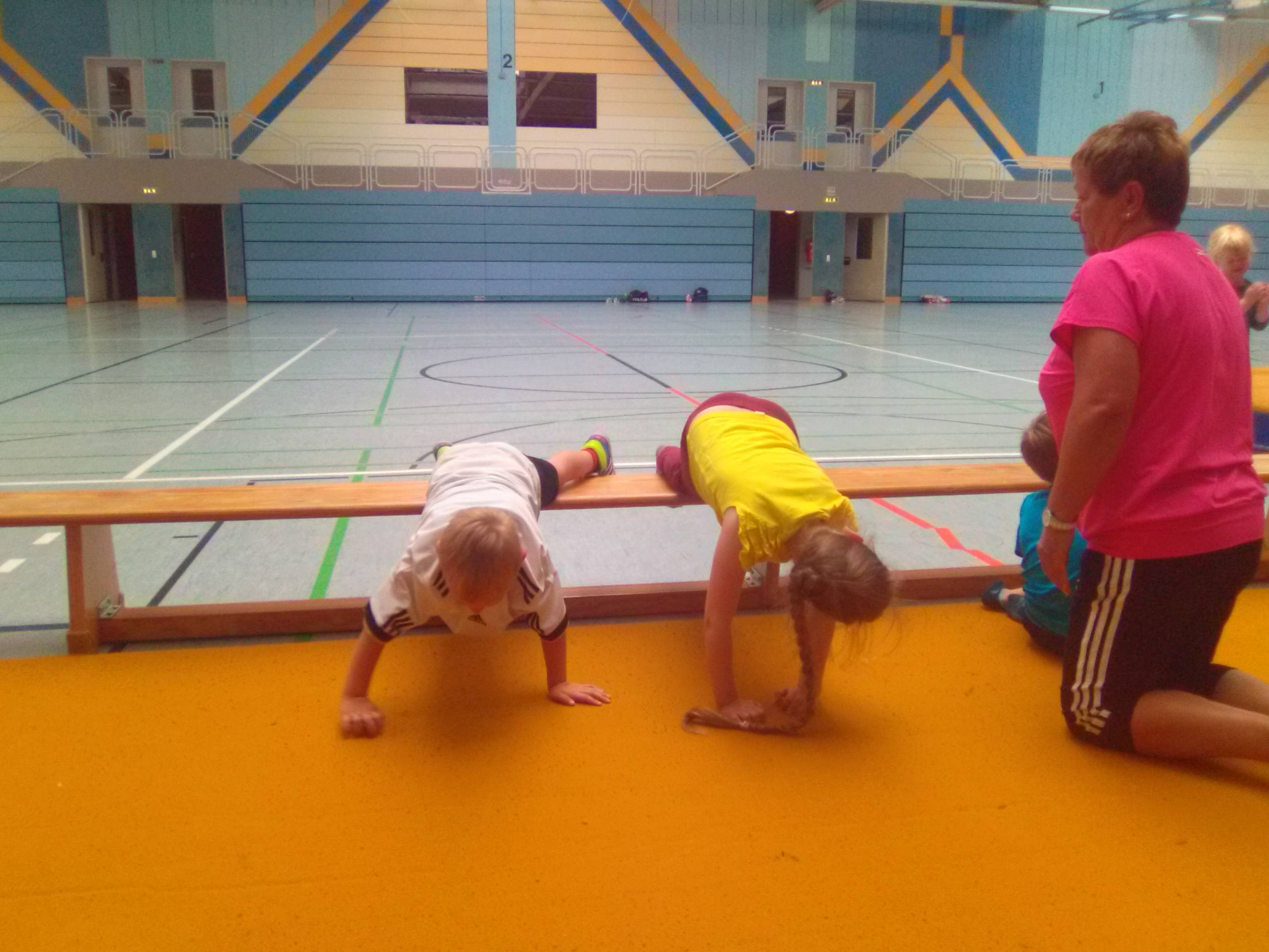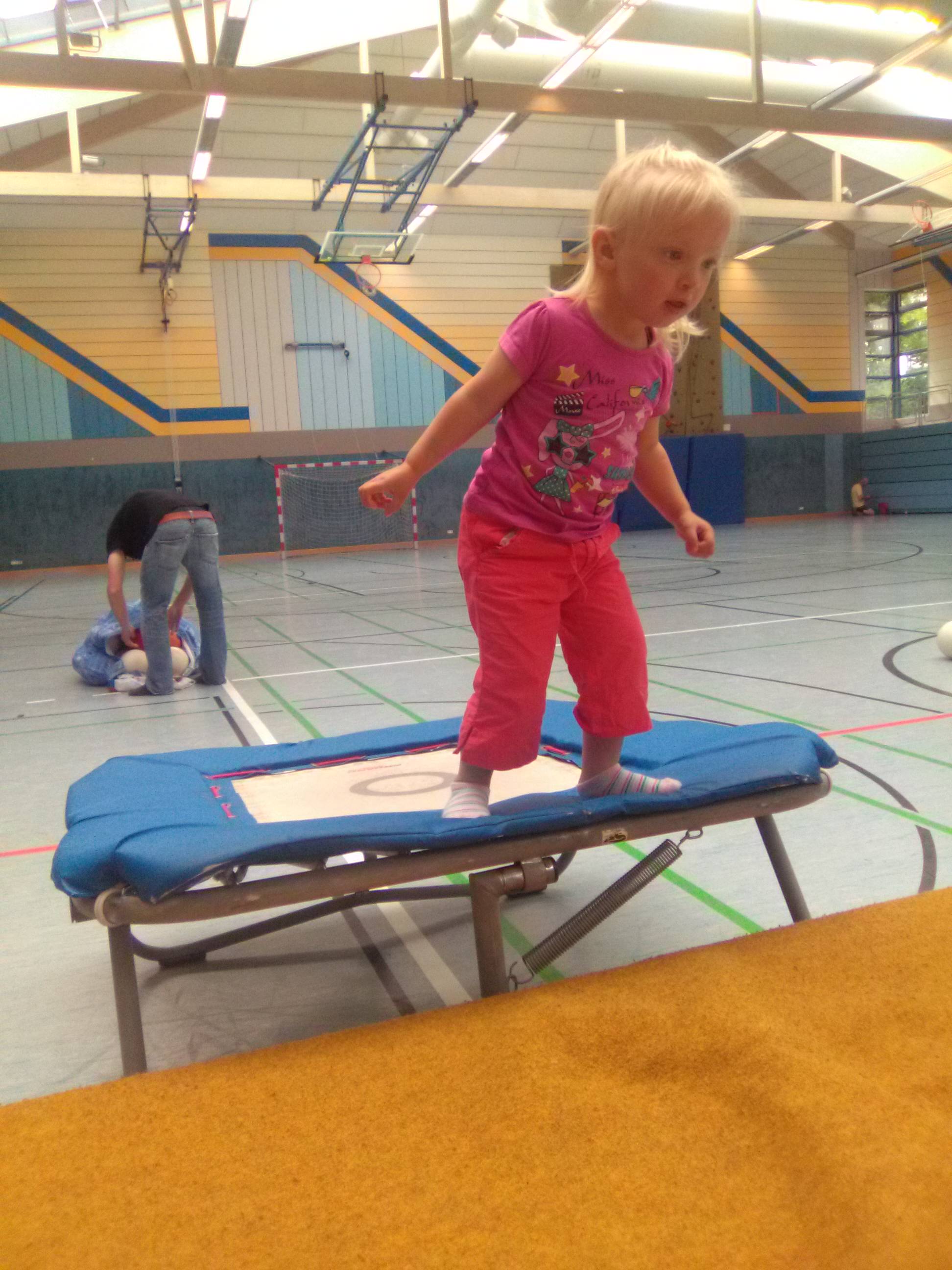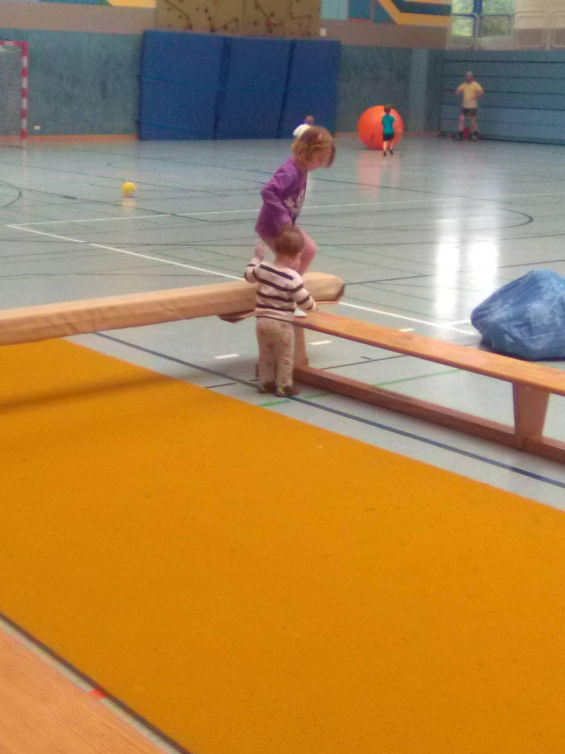 Hier werden die elementaren Bewegungsabläufe geschult. Kinder ab 2 Jahren können mit Mami, Papi oder alleine klettern, springen turnen, toben und viele andere Sachen ausprobieren.