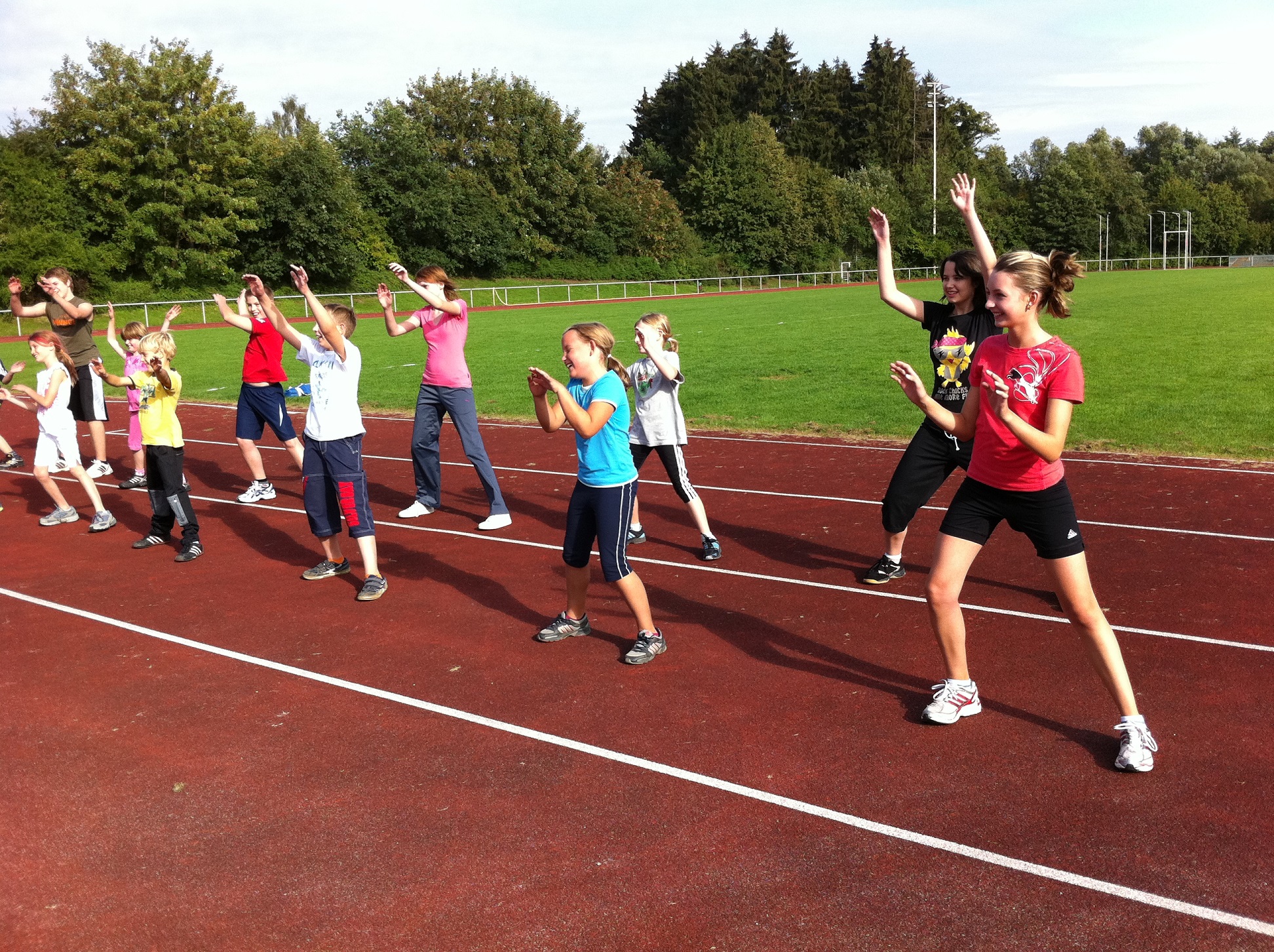Hierzu gehören Ausdauertraining wie Laufen, Weitsprung, Hochsprung, Kugelstossen, Werfen, Sprints, uvm.